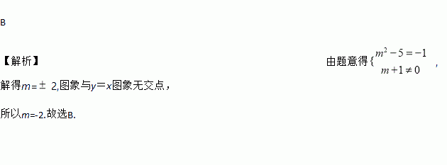 已知函数y=(m+1) 是反比例函数,且该图象与y=x图象无交点,则m 的值是 ( )