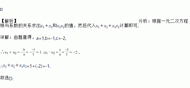 已知方程x2-x-2=0的两个实数根为x1、x2,则代数式x1+x2+x1x2的值为( )