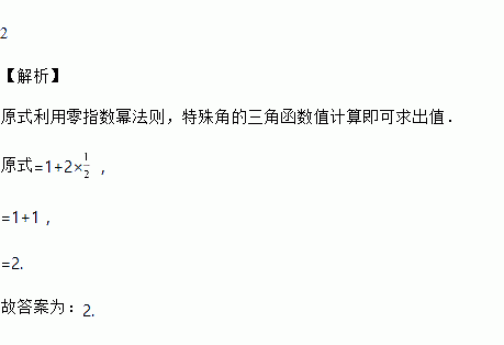 计算:(π﹣3.14)0+2cos60°= .