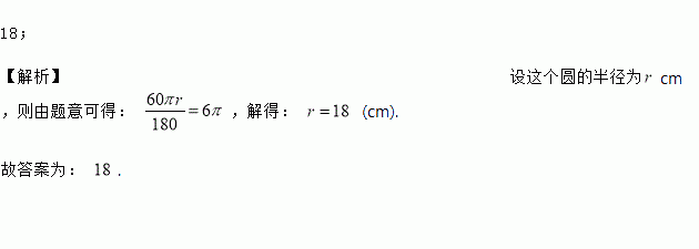 在一个圆中,如果60°的圆心角所对弧长为6πcm,那么这个圆所对的半径为_____cm.