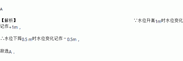 A 【解析】∵水位升高1m时水位变化记作+1m, ∴水位下降0.5 m时水位变化记作﹣0.5m, 故选A.