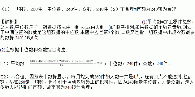 (1)写出这15人该月加工零件数的平均数、中位数和众数。