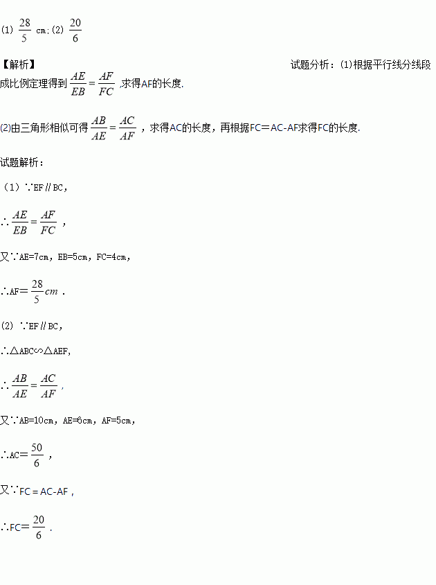 (1)如果AE=7cm,EB=5cm,FC=4cm,那么AF的长是多少?
