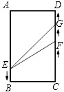 | 解:(1)如图1,当t=1秒时, AE=2,EB=10,BF=4,FC=4,CG=2 由S=S梯形GCBE﹣S△EBF﹣S△FCG = = =24(cm2); (2)①如图1,当0≤t≤2时, 点E、F、G分别在边AB、BC、CD上移动, 此时AE=2t,EB=12﹣2t,BF=4t,FC=8﹣4t,CG=2t, S=S梯形GCBE﹣S△EBF﹣S△FCG = = =8t2﹣32t+48. 即S=8t2﹣32t+48; ②如图2,当点F追上点G时,4t=2t+8,解得:t=4; 当2<t<4时,点E在边AB上移动,点F、G都在边CD上移动, 此时CF=4t﹣8,CG=2t,FG=CG﹣CF=2t﹣(4t﹣8)=8﹣2t, S= = =﹣8t+32. 即S=﹣8t+32; (3)如图1,当点F在矩形的边BC上的边移动时,0≤t≤2, 在△EBF和△FCG中,∠B=∠C=90°, ①若 解得:t= 又t= ∴当t= ②若 解得:t= 又t= ∴当t= 综上所述,当t= |