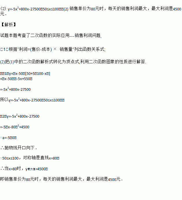(2)求出销售单价为多少元时,每天的销售利润最大?最大利润是多少?