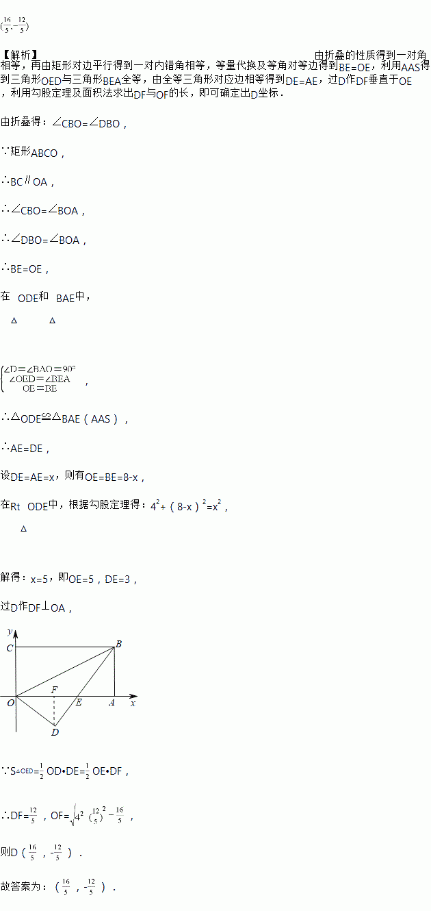 如图,四边形是矩形,点的坐标为,点的坐标为,把矩形沿折叠,点落在点处,则点的坐标为__________.