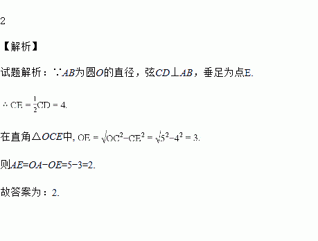 如图,AB为圆O的直径,弦CD⊥AB,垂足为点E,连接OC,若OC=5,CD=8,则AE=______.
