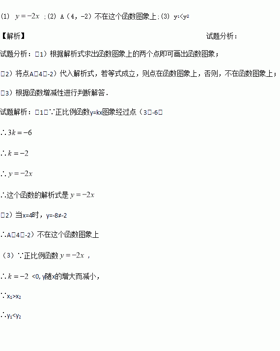 已知正比例函数y=kx图象经过点(3,-6),求: