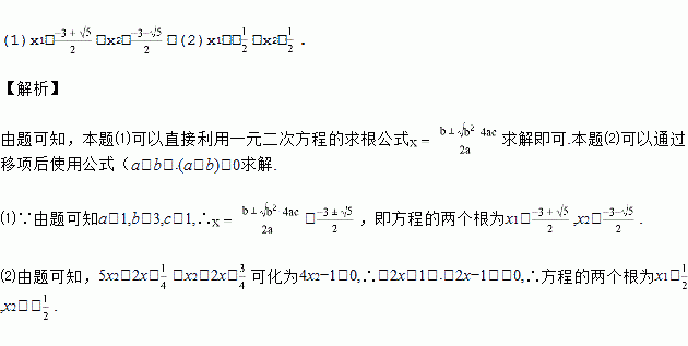 (1)x2+3x+1=0;(2)5x2-2x-=x2-2x+.