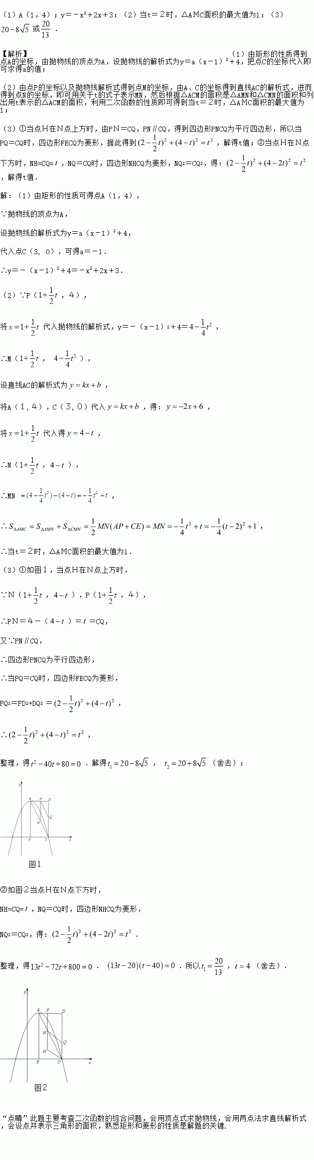(3)点Q从点C出发,以每秒1个单位的速度沿线段CD向点D运动,当t为何值时,在线段PE上存在点H,使以C、Q、N、H为顶点的四边形为菱形?