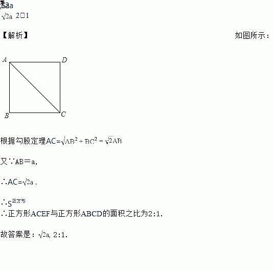 若正方形的边长为a,则其对角线长为______,若正方形ACEF的边是正方形ABCD的对角线,则正方形ACEF与正方形ABCD的面积之比等于______.
