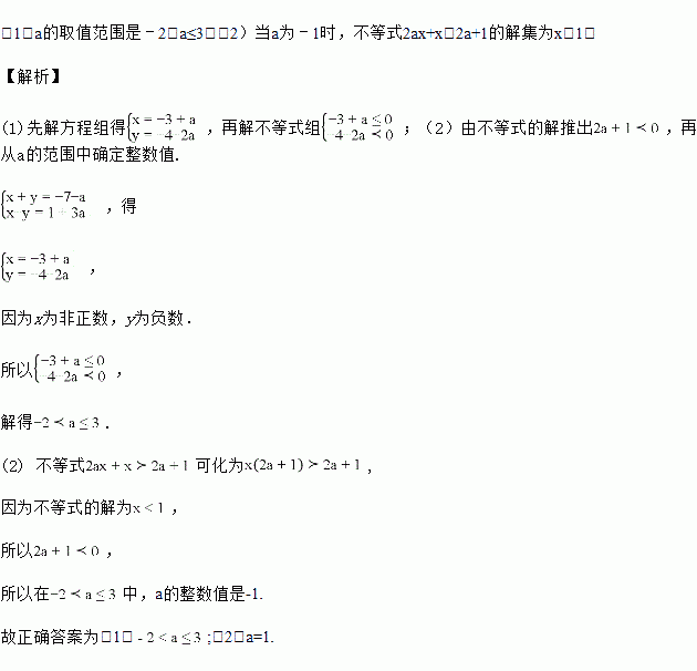 (2)在a的取值范围中,当a为何整数时,不等式2ax+x>2a+1的解集为x<1.