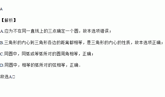 A. 三点确定一个圆 B. 三角形的内心到三角形各边的距离都相等