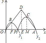 分析:过B作BF⊥OA于F,过D作DE⊥OA于E,过C作CM⊥OA于M,则BF+CM是这两个二次函数的最大值之和,BF∥DE∥CM,求出AE=OE=2,DE=