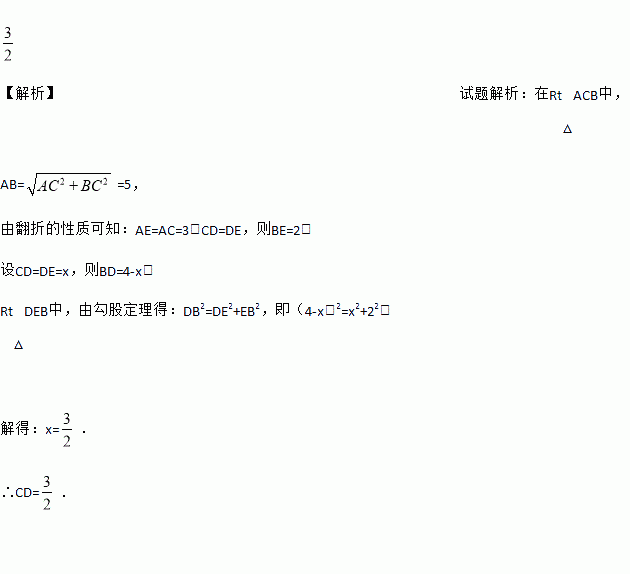 如图,有一块直角三角形纸片,两直角边cm, cm,现将直角边沿直线折叠,使它落在斜边上,且与重合,则_________.