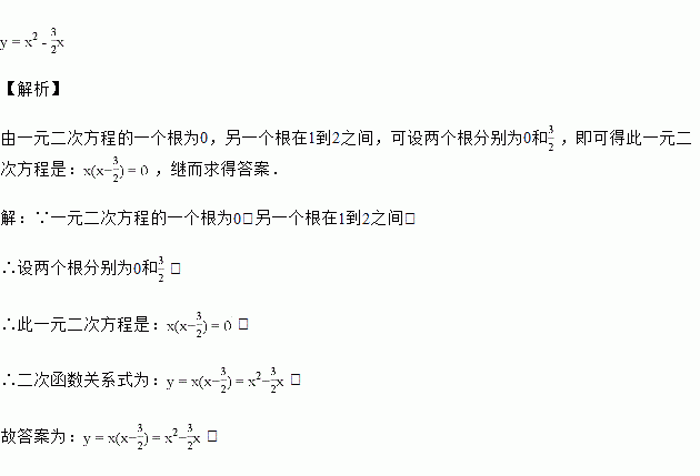 试写出一个二次函数关系式,使它对应的一元二次方程的一个根为0,另一个根在1到2之间:________.