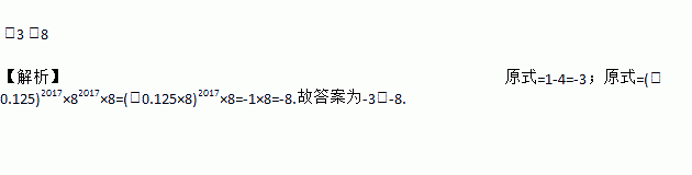 计算:π0-=________;(-0.125)2017×82018=________.