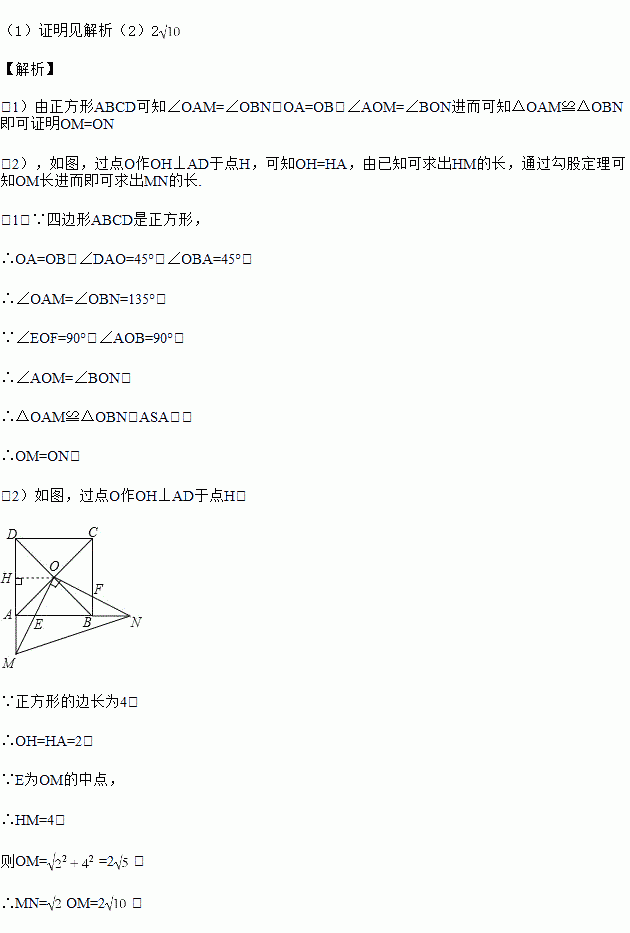 (2)若正方形ABCD的边长为4,E为OM的中点,求MN的长.