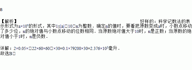 我国是一个严重缺水的国家,大家应倍加珍惜水资源,节约用水.据测试,拧不紧的水龙头每秒钟会滴下2滴水,每滴水约0.05毫升.若每天用水时间按2小时计算,那么一天中的另外22小时水龙头都在不断的滴水.请计算,一个拧不紧的水龙头,一个月(按30天计算)浪费水( )