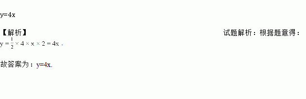 已知等腰三角形的腰长为xcm,顶角平分线与对边的交点到一腰的距离为4cm,这个等腰三角形的面积为ycm2,则y与x的函数关系式为____________.