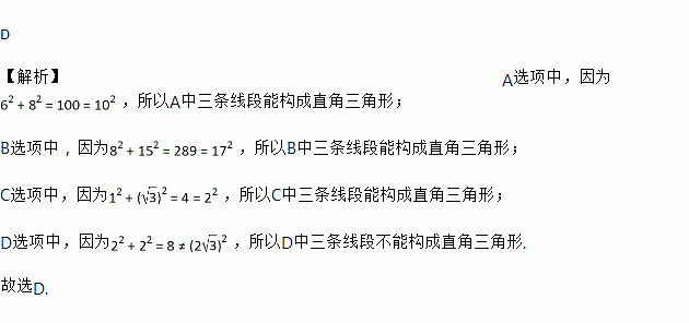 下列各组数中,以它们为边长的线段不能构成直角三角形的是( ).