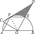 (2)连接OP,在Rt△OPD中,由特殊角的三角形函数值可得出PD的长度,根据阴影部分的面积=△OPD的面积-扇形OPE的面积即可求出结论;