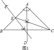 (1)只用直尺(没有刻度)和圆规,作出∠A的平分线AD和AB边上的中线CE(要求保留作图痕迹,不必写出作法);