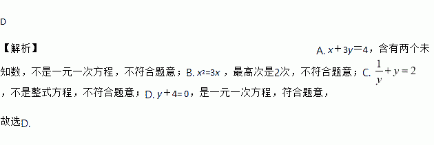 A. x+3y=4 B. x2=3x C.