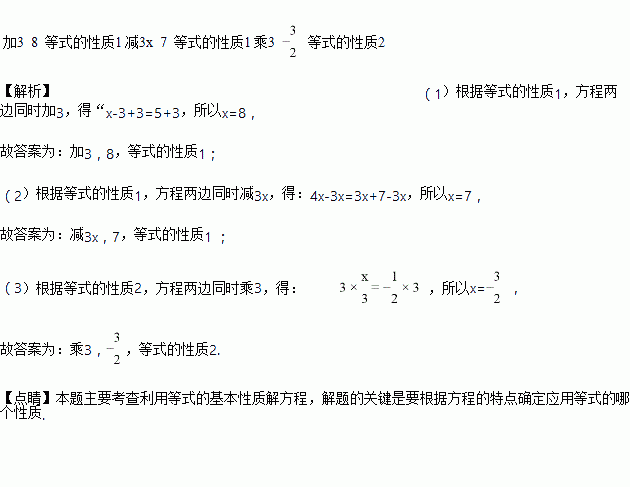 (2)已知等式4x=3x+7,两边同时________,得x=________,根据是________;