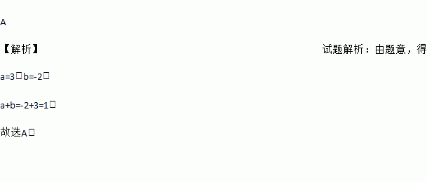 A 【解析】试题解析:由题意,得 a=3,b=-2, a+b=-2+3=1, 故选A.
