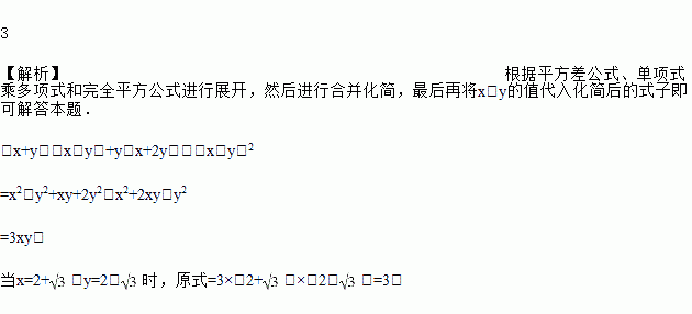 先化简,再求值:(x+y)(x﹣y)+y(x+2y)﹣(x﹣y)2,其中x=2+,y=2﹣.