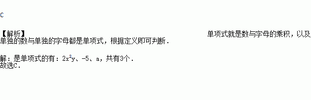 在代数式,2x2y, ,-5,a中,单项式的个数是( )
