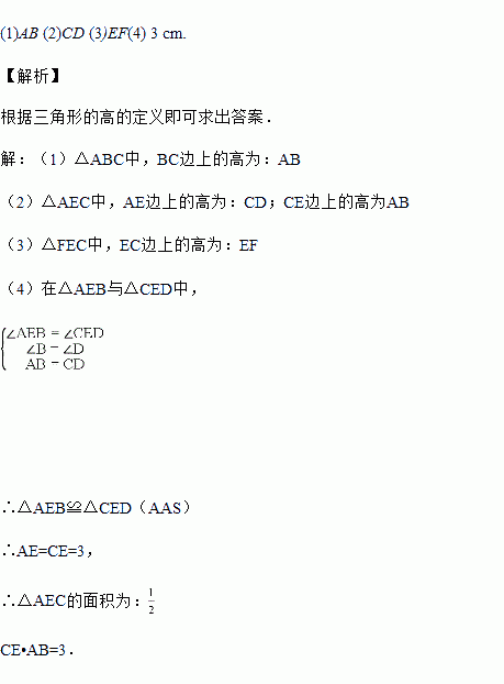 (4)若AB=CD=2 cm,AE=3 cm,求△AEC的面积及CE的长.