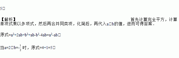 先化简,再求值:(a+b)2+b(a﹣b)﹣4ab,其中a=2,b=﹣.
