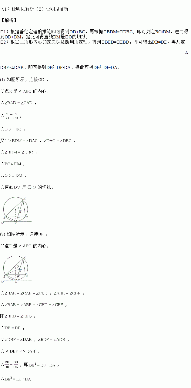 如图,点是的内心,的延长线交于点,交的外接圆于点,连接,过点作直线,使.