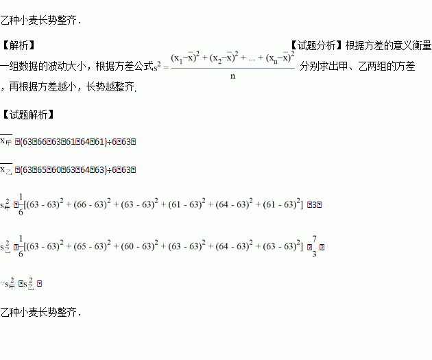 请分别计算表内两组数据的方差,并借此比较哪种小麦的株高长势比较整齐.