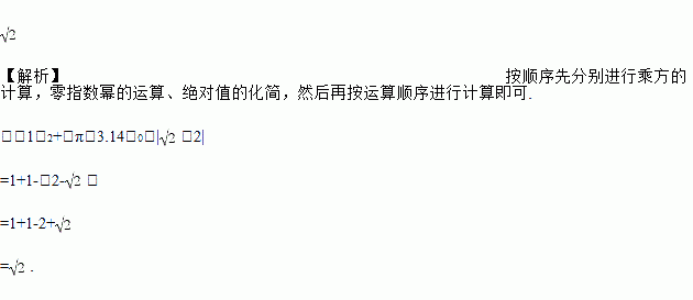 计算:(﹣1)2+(π﹣3.14)0﹣|
