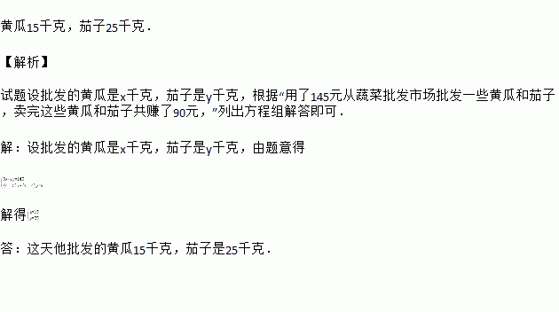 当天他卖完这些黄瓜和茄子共赚了90元,这天他批发的黄瓜和茄子分别是多少千克?