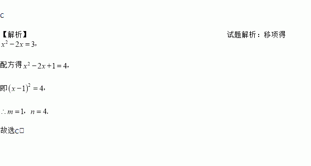 将方程x2﹣2x﹣3=0化为(x﹣m)2=n的形式,指出m,n分别是( )