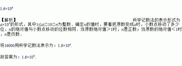2017年10月10日,中科院国家天文台宣布,“中国天眼”发现1颗新脉冲星,距离地球16000光年。将16000用科学记数法表示为_____________.