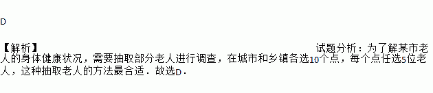 为了解某市老人的身体健康状况,需要抽取部分老人进行调查,下列抽取老人的方法最合适的是( )