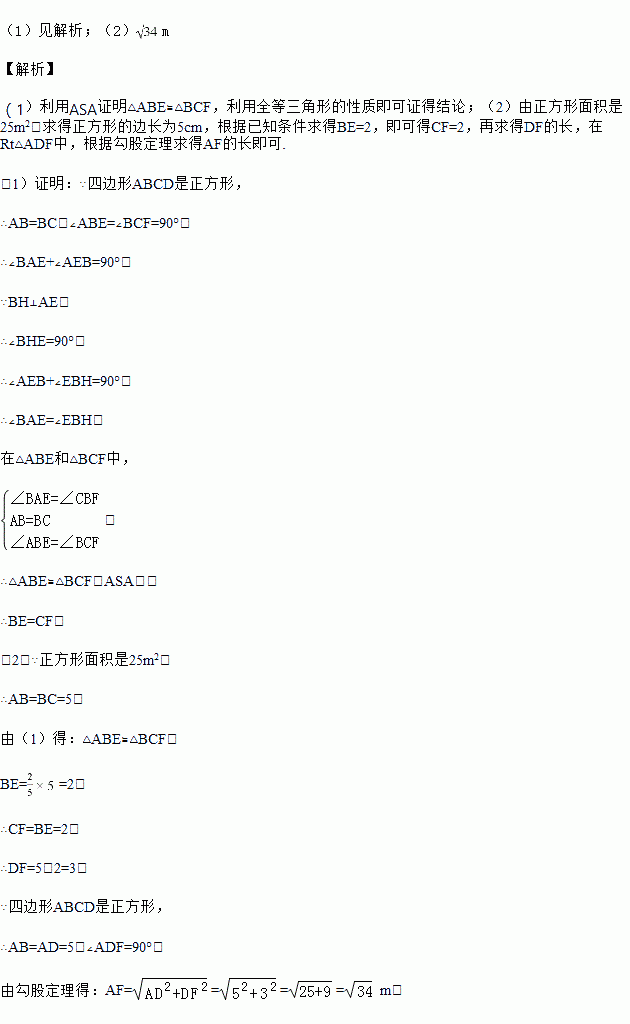 如图所示,正方形ABCD中,E、F分别是BC、DC上的一点,连接AE、AF, AE、AF交于点H且∠AHB=90°.