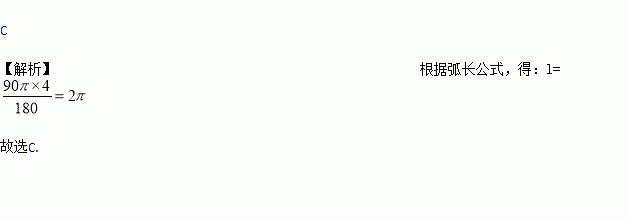 已知圆心角为900的扇形的半径为4,那么此扇形的弧长为( ).