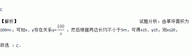 某学校要种植一块面积为100 m2的长方形草坪,要求两边长均不小于5 m,则草坪的一边长为y(单位:m)随另一边长x(单位:m)的变化而变化的图象可能是( )