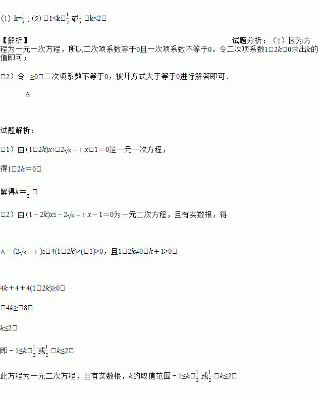 (2)若此方程为一元二次方程,且有实数根,试求k的取值范围.