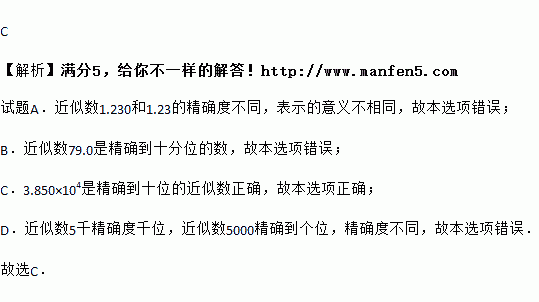 D. 近似数5千与近似数5 000的精确度相同