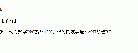 将数字“6”旋转 180°,得到数字“9”;将数字“9”旋转 180°,得到数字 “6”.现将数字“69”旋转 180°,得到的数字是( )