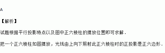 把一个正六棱柱如图摆放,光线由上向下照射此正六棱柱时的正投影是( )