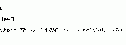 A.2x﹣1+6x=3(3x+1) B.2(x﹣1)+6x=3(3x+1)