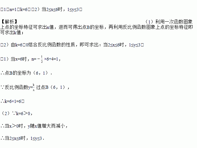 (x>0)的图象上,求当2≤x≤6时,函数值y的取值范围.